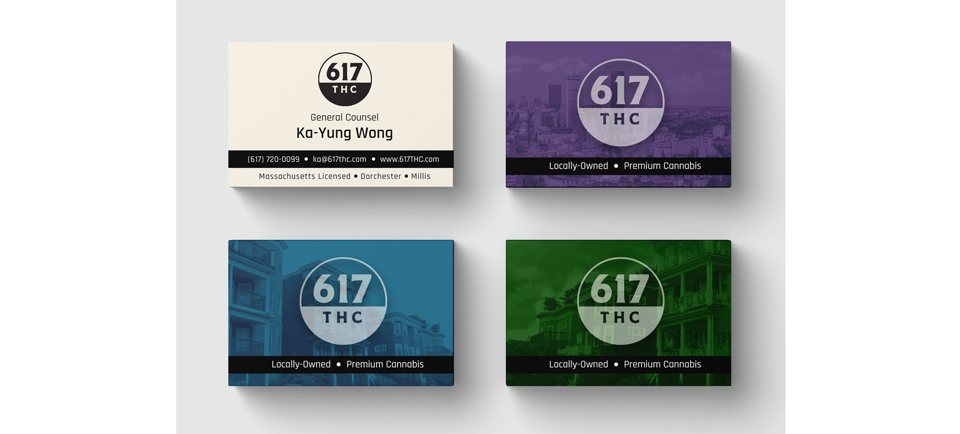 617 THC is a Boston-based cannabis cultivator and dispensary. The "617" refers to the greater Boston area code and so the brand needed to reflect the essence of this city, both in a modern sense, and also reflective of its rich role in American history. I took inspiration from the public transit system, commonly known as the "T", which is easily recognizable by its circular marker. The founders are partial to a mid-century modern style so I brought that in with the choice of fonts and a vibrant color palette.